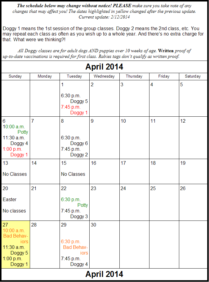 April 2016 Group Classes and Seminars